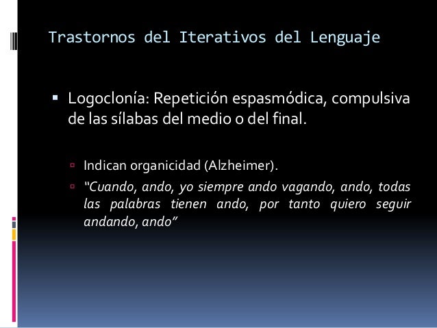 Alteraciones Del Contenido Del Lenguaje Se Presentan En El Ritmo Estilo O Habla De La Persona Estereotipias Verbales Reiterada Inclusion En El Discurso De La Persona De Palabras Innecesarias Se Les Suele